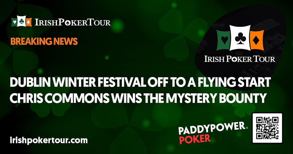 Chris Commons Wins The Mystery Bounty The Dublin Winter Festival, hosted by the Irish Poker Tour and sponsored by Paddy Power Poker, had a very busy opening day at the Green Isle Hotel. The main attraction of the day, the Paddy Power Mystery Bounty had over 50 entries by the end of the first level…