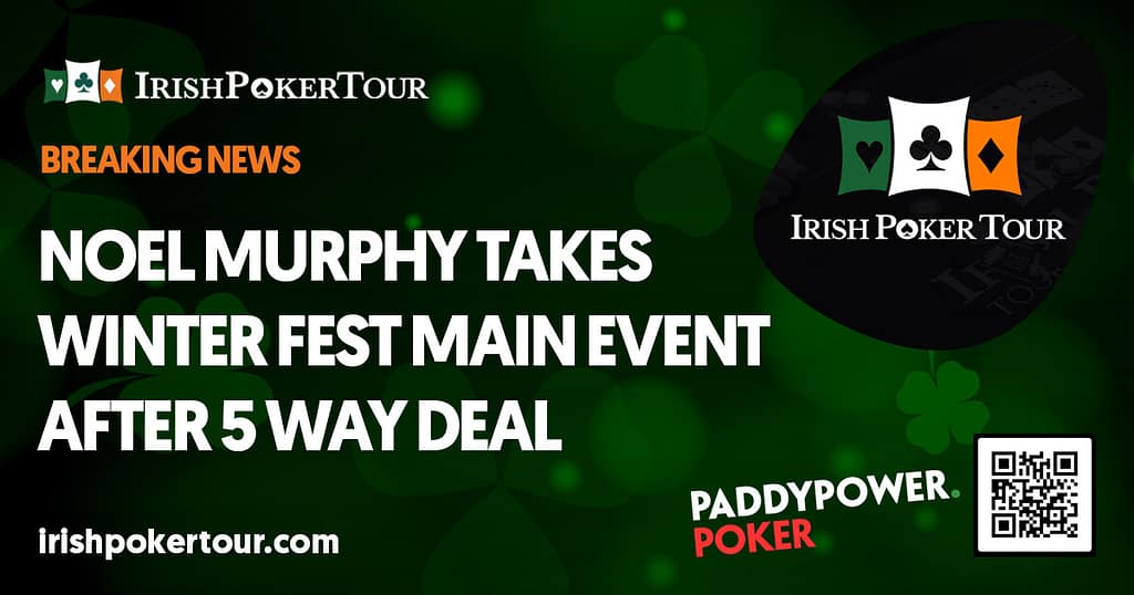 Hometown boy, Noel Murphy took the Dublin Winter Festival Main Event trophy and €19,875 after a five way deal last night. After a great battle where all players agreed that the tournament structure gave everyone a very fair chance, Noel, Derek Baker, Shane Keary, Keith Touhey and Peter Roche agreed to take €18,875 each and…