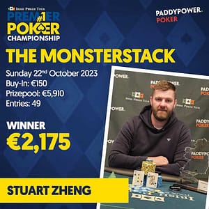 Stuart Zheng took down the Monsterstack for €2,175. He bested 48 entrants to take it down. The prize pool for his was a very respectable €5,910.